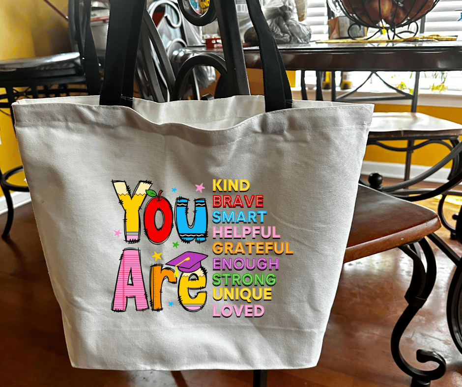 Inspirational Teacher Tote Bag – Motivational Words Design – Canvas School Bag for Educators